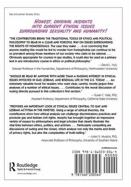 Gay Ethics is an anthology that addresses ethical questions involving key moral issues of today--sexual morality, outing, gay and lesbian marriages, military service, anti-discrimination laws, affirmative action policies, the moral significance of sexual orientation research, and the legacy of homophobia in health care. It focuses on these issues within the social context of the lives of gay men and lesbians and makes evident the ways in which ethics can and should be reclaimed to pursue the moral good for gay men and lesbians.Gay Ethics is a timely book that illustrates the inadequacies of various moral arguments used in regard to homosexuality. This book reaches a new awareness for the standing and treatment of gay men and lesbians in society by moving beyond conventional philosophical analyses that focus exclusively on the morality of specific kinds of sexual acts, the nature of perversion, or the cogency of scientific accounts of the origins of homoeroticism. It raises pertinent questions about the meaning of sexuality for private and public life, civics, and science. Some of the issues covered: Sexual Morality Outing Same-Sex Marriage Military Service Anti-Discrimination Laws Affirmative Action Policy The Scientific Study of Sexual Orientation Bias in Psychoanalysis Homophobia in Health CareGay Ethics presents a wide range of perspectives but remains united in the common purpose of illuminating moral arguments and social policies as they involve homosexuality. The chapters challenge social oppression in the military, civil rights, and the social conventions observed among gay men and lesbians themselves. This book is applicable to a broad range of academics working in gay and lesbian studies and because of its current content, is of interest to an educated lay public. It will be a standard reference point for future discussion of the matters it addresses.