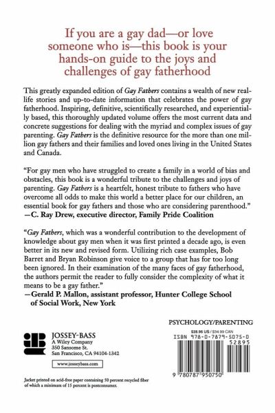 In the more than ten years since the first edition of Gay Fathers was published, the gay rights movement has made great strides. The most current research reveals that most gay fathers are good parents, raising healthy, well-adjusted kids. Gays and lesbians have become part of mainstream America and parenting is no longer seen as an exclusive right of heterosexuals. Today, more and more openly gay men are choosing to become fathers. Addressing the revolutionary changes affecting gay parenthood, this greatly expanded edition of Gay Fathers includes a wealth of information that supports the joys of gay fathering. With wisdom and heart, the authors embrace the many types of gay fatherhood-unmarried gay fathers, single and adoptive gay fathers, gay fathers with intact marriages, single gay fathers, gay father stepfamilies, two gay fathers and a lesbian mother, and separated or divorced gay fathers-and offer practical guidance for gay dads and their families no matter what their situation. This compassionate resource is filled with a broad range of helpful material and addresses many of the key issues that concern gay fathers: * Guidance for navigating through the latest changes in the adoption and surrogate parenting processes * Current facts about the most pertinent legal issues * New case studies that explore the strengths of gay fathering * Targeted information about successful stepparenting * Heartfelt advice for gay grandfathers * An enlightening guide to the spiritual aspects of gay fathering * A handy listing of useful Internet resources In addition to affirming the rich potential of gay parenting, this intelligent book goes a long way to destroy many of the deeply ingrained homophobic stereotypes. [Headline] If you are a gay dad--or love someone who is3/4this book is your hands-on guide to the joys and challenges of gay fatherhood This greatly expanded edition of Gay Fathers contains a wealth of new real-life stories and up-to-date information that celebrates the power of gay fatherhood. Inspiring, definitive, scientifically researched, and experientially based, this thoroughly updated volume offers the most current data and concrete suggestions for dealing with the myriad and complex issues of gay parenting. Gay Fathers is the definitive resource for the more than one million gay fathers and their families and loved ones living in the United States and Canada. "For gay men who have struggled to create a family in a world of bias and obstacles, this book is a wonderful tribute to the challenges and joys of parenting. Gay Fathers is a wonderful, honest tribute to fathers who have overcome all odds to make this world a better place for our children, an essential book for gay fathers and those who are considering parenthood." --C. Ray Drew, executive director, Family Pride Coalition "Gay Fathers, which was a wonderful contribution to the development of knowledge about gay men when it was first printed a decade ago, is even better in its new and revised form. Utilizing rich case examples, Bob Barret and Bryan Robinson give voice to a group that has for too long been ignored. In their examination of the many faces of gay fatherhood, the authors permit the reader to fully consider the complexity of what it means to be a gay father." --Gerald P. Mallon, assistant professor, Hunter College School of Social Work, New York