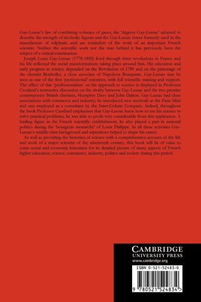 Gay-Lussac is best known for his chemical work but also made important contributions to other physical sciences and technology. This is the first work to examine critically both the scientific work and the man behind it. Joseph Louis Gay-Lussac (1778 1850) lived through three revolutions in France and his life reflected the social transformations taking place around him. His education and early progress in science depended on the Revolution of 1789 and on the patronage of the chemist Berthollet, a close associate of Napoleon Bonaparte. Gay-Lussac may be seen as the first 'professional' scientist and indeed, throughout the book, Professor Crosland emphasises that he knew how to use his science to solve practical problems and was able to profit considerably from this application.