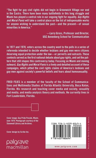 "Gay Rights and Moral Panic is a significant scholarly effort that illuminates the multifaceted dimensions of the gay rights debate in Dade County and its reverberation across the nation, and indeed around the world. This is an important book that is foundational for those interested in twentieth century LGBT history, social justice and human rights campaigns, the role of the religious right in late twentieth century politics, and the intersection of historicity, media representations, and identity." - Women s Studies in Communication