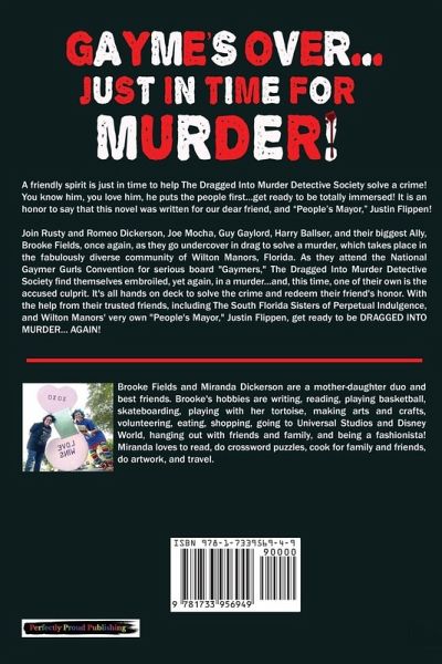 A friendly spirit is just in time to help The Dragged Into Murder Detective Society solve a crime! You know him, you love him, he puts the people first...get ready to be totally immersed! It is an honor to say that this novel was written for our dear friend, and "People's Mayor," Justin Flippen! Join Rusty and Romeo Dickerson, Joe Mocha, Guy Gaylord, Harry Ballser, and their biggest Ally, Brooke Fields, once again, as they go undercover in drag to solve a murder, which takes place in the fabulously diverse community of Wilton Manors, Florida. As they attend the National Gaymer Gurls Convention for serious board "Gaymers," The Dragged Into Murder Detective Society find themselves embroiled, yet again, in a murder...and, this time, one of their own is the accused culprit. It's all hands on deck to solve the crime and redeem their friend's honor. With the help from their trusted friends, including The South Florida Sisters of Perpetual Indulgence, and Wilton Manors' very own "People's Mayor," Justin Flippen, get ready to be DRAGGED INTO MURDER... AGAIN!