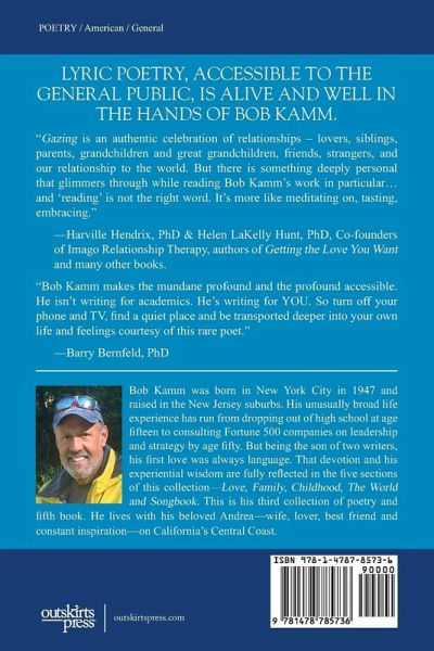 In this, his third collection of poetry and other musings, Bob Kamm continues to expand and refine his capacity to touch a wider audience than is generally drawn to poetic works. These are real poems for real people from a man of extraordinarily broad life experience. There are poems here that honestly explore the joys, challenges and nuances of love relationships with exceptional sensitivity and lyricism; poems that visit the beauty, pain and complexities of family; poems that reveal the vulnerability and magic of childhood; poems that step into the world and take you from the raucous streets of New York City to the silence of California mountain tops and many places in between; and finally, song lyrics that are touching, illuminating and funny. These are works that should be read out loud in intimate places and wide open spaces. They should be shared with lovers, family, friends and colleagues. As you enter the pages of this book, you will quickly find yourself relaxing into the knowledge that you are in the hands of a masterful artist who truly does care about you and has the courage to ask you to care about him in return.