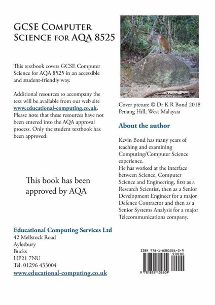 Student textbook covering AQA GCSE Computer Science 8525 specification in depth. It includes programming examples in the programming languages Python, VB.NET, Pascal/Delphi, C# and Java. The textbook is organised into chapters that map one-to-one to the specification. Each chapter contains questions which test students' understanding of the topic. Some chapters also include programming tasks, other tasks and discussion questions. The textbook is accompanied by downloadable resources and the solutions to all the questions.