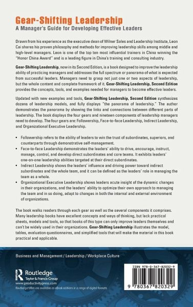 Drawn from his experience as the executive dean of Wilner Sales and Leadership Institute, Leon Cai shares his proven philosophy and methods for improving leadership skills among middle and high-level managers. Leon is one the top ten most influential trainers in China winning "Honor China Award" and is a leading figure in China's training and consulting industry. Gear-Shifting Leadership, now in its Second Edition, is a book designed to improve leadership ability of practicing managers and addresses the full spectrum or panorama of what is expected from successful leaders. Managers need to grasp more than just one or two aspects of leadership, but the whole content and complete framework of it. Gear-Shifting Leadership, Second Edition provides the concepts, tools, and examples needed for managers to become effective leaders. Updated with new examples and tools, this second edition of Gear-Shifting Leadership synthesizes dozens of leadership models, and fully displays "the panorama of leadership." The author demonstrates the panorama by showing the links and connections between different parts of leadership. The book displays the four gears and nineteen components of leadership managers need to develop. The four gears are: Followership, Face-to-face Leadership, In-Direct Leadership, and Organizational Executive Leadership. ¿ Followership refers to the ability of leaders to win the trust from subordinates, superiors, and counterparts through demonstrative self-management. ¿ Face-to-face Leadership demonstrates the leaders' ability to drive, encourage, instruct, manage, control, and develop direct subordinates and core teams. It exhibits leaders' one-on-one leadership abilities targeted at their direct subordinates. ¿ Indirect Leadership shows the leaders' influence and driving power towards indirect subordinates and the whole team, and it can be defined as the leaders' role in managing the team as a whole. ¿ Organizational Executive Leadership shows leaders' acute insight of the dynamic changes in their organizations, and the leaders' ability to optimize their own approach to managing the team and in so doing, adapt to changes in both the internal and external environment of organizations. The book walks readers through each gear as well as the several components it comprises. Many leadership books have excellent concepts and ways of thinking, but lack practical sheets, models and tools, so that books of this type can only improve leaders themselves and can't be widely used in their organizations. Gear-Shifting Leadership illustrates the model, tables, evaluation questionnaires, and simplified tools that will make the material in this book practical and applicable.