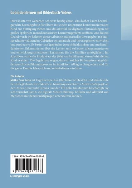 Der Einsatz von Gebärden scheitert häufig daran, dass bisher kaum bedarfsgerechte Lernangebote für Eltern mit einem unterstützt kommunizierenden Kind zur Verfügung stehen und das obwohl die digitalen Entwicklungen ein großes Spektrum an medienbasierten Lernarrangements eröffnen. Aus diesem Grund wurde im Rahmen dieser Arbeit ein audiovisuelles Lernangebot mit lautsprachunterstützenden Gebärden systematisch und theoriegeleitet entwickelt und produziert. Es basiert auf (gebärden-)sprachdidaktischen und mediendidaktischen Erkenntnissen über das Lernen und soll einen alltagsintegrierten und entwicklungsorientierten Lernansatz für die Familien ermöglichen. Im Anschluss wurde das Produkt aus der Sicht von Familien mit einem behinderten Kind evaluiert. Die Ergebnisse zeigen, dass ein solches Bildungsformat gebärdensprachliche Bildungsprozesse im familiären Alltag in Gang setzen und für die ganze Familie lehrrreich und unterhaltsam sein kann.