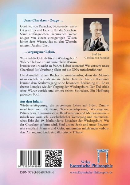 Unser Charakter - Zeuge vergangener Leben. Gottfried von Purucker, bedeutender Sanskritgelehrter und Experte für alte Sprachen. Seine umfangreichen literarischen Werke zeugen von einem einzigartigen Wissen hinter dem Wissen, das zu den Wurzeln unseres Daseins führt. Was sind die Gründe für die Wiedergeburt? Welcher Teil von uns ist unsterblich? Warum können wir uns nicht an frühere Leben erinnern? Wie entsteht unser Charakter? Ist Vererbung allein auf die DNA zurückzuführen? Die Aktualität dieses Buches ist unverkennbar, denn der Mensch ist wesentlich mehr als eine sterbliche Hülle, der Körper. Hierdurch kommt dem Sterbevorgang seine besondere Bedeutung zu. Er ist ebenso komplex wie der Vorgang der Wiedergeburt. Der Tod erhält seine Würde zurück und verliert seinen Schrecken. Ein Hoffnung gebendes Buch! Aus dem Inhalt: Wiederverkörperung, die verbreitetste Lehre auf Erden. Zusammenhänge von Präexistenz, Wiederverkörperung, Wiedergeburt, Palingenesis, Transmigration, Reinkarnation und Metensomatose - irdisch wie kosmisch. Geschichtlicher Werdegang und materialistisches Erbe des 19. Jahrhunderts. Ursachen der Wiedergeburt. Wie der Charakter geformt wird. Sind unsere Seele und unser Bewusstsein sterblich? Materie und Geist, untrennbar miteinander verbunden. Anfang und Ende sind illusorische Träume.