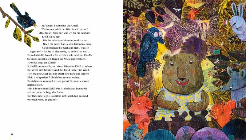 Wald und Wiese sind Schauplätze der neuen bunten Geschichten in der Herbstausgabe Gecko Nr. 103: Drei befreundete Kinder regieren als Königinnen und Könige des Waldes im verzauberten Waldschloss aka Baumhaus. Mit Schläue, Geschicklichkeit und viel Phantasie, wie es Gundi Herget schildert und Sabine Wiemers in den Farben des Waldes ausmalt. Bernhard Hagemann (Text) und Mascha Greune (Illustration) erzählen gewitzt von der hungrigen Stadtratte Rudi, die einen Ausflug aufs Land unternimmt, dorthin, wo die Portionen noch reichlich sind. Im Walde geht es weiter mit einem Bären, der ein Kleid findet, das ihm das Leben rettet. Wie sich diese unglaubliche Begebenheit zugetragen hat, malt Andreas Strozyk aus. Mit saftigen Blattstrukturen aufregend frisch illustriert von Lisa S. Rackwitz. Die tolle Drucktechnik zeigt sie auch in der anknüpfenden Kreativ-Rubrik "Sachen machen" mit lustigen Apfel-Typen auf einem Beutel. Im Wimmel-Suchbild mit Familie Fluse gehen die Wollmäuse diesmal zur Schule - Schulfach: Staubkunde... Das ABC der Tunwörter von Ina Hattenhauer umarmt verbal die ganze Welt mit "u... wie umarmen". Dazu wie immer Rätsel, Sprachspiele, ein Gedicht, Buchtipps und vieles mehr. Viel Spaß beim Vorlesen und ersten Selberlesen! 52 bunte Seiten zum Vor- und Selberlesen für neugierige Kinder ab 4 und ihre Erwachsenen. Gecko 103 erscheint am 2. September 2024 ISBN 978-3-911209-02-1 Die Geschichten: 'Das Waldschloss' von Gundi Herget und Sabine Wiemers 'Rudi Ratte auf dem Land' von Bernhard Hagemann und Mascha Greune 'Eine Bärengeschichte' von Andreas Strozyk und Lisa S. Rackwitz Alle Künstlerinnen und Künstler dieser Gecko-Ausgabe: Gundi Herget, Sabine Wiemers, Stefanie Duckstein, Bernhard Hagemann, Mascha Greune, Andreas Strozyk, Lisa S. Rackwitz, Katrin Wiegand, Ina Hattenhauer, Bettina Bexte, Heidemarie Brosche, Lena Ellermann, Ina Nefzer. - - - - - - - - - - - - - - - - - - - - - - - - - - - - - - - - - - - - - - - - - - - - - - - - - - - - Gecko ist eine werbefreie Bilderbuch-Zeitschrift für neugierige Kindergartenkinder ab 4 Jahren und Grundschulkinder. Jede Ausgabe ist voll mit neuen spannenden Geschichten zum Vorlesen und Selberlesen - und eigens für Gecko illustriert! Außerdem gibt es Wortspiele, Mitmachseiten, Buchtipps, Suchbilder, Rätsel, Bastelideen, Gedichte, ein Experiment und vieles mehr. Alle Geschichten haben die ideale Länge für Gutenachtgeschichten. Gecko wurde mit dem Qualitätssiegel der Stiftung Lesen ausgezeichnet. Gecko gibt es auch als Abonnement: Alle Eltern, Großeltern, Tanten und Onkel können ihren Kindern ein Jahr Vorlesespaß und gemeinsame Zeit schenken. Alle zwei Monate freuen sich die kleinen Abonnenten auf eigene Post. Auf www.gecko-kinderzeitschrift.de und in jeder Buchhandlung.