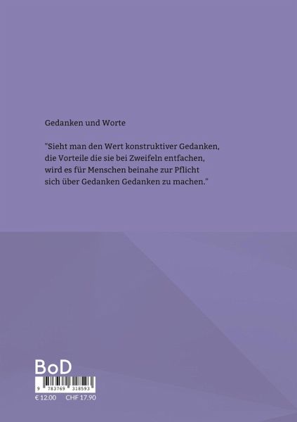 Gedanken und Worte "Sieht man den Wert konstruktiver Gedanken, die Vorteile die sie bei Zweifeln entfachen, wird es für Menschen beinahe zur Pflicht sich über Gedanken Gedanken zu machen."