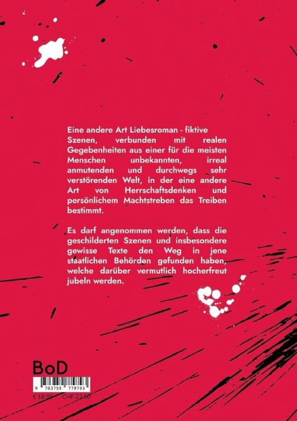 Eine andere Art Liebesroman - fiktive Szenen, verbunden mit realen Gegebenheiten aus einer für die meisten Menschen unbekannten, irreal anmutenden und durchwegs sehr verstörenden Welt, in der eine andere Art von Herrschaftsdenken und persönlichem Machtstreben das Treiben bestimmt. Es darf angenommen werden, dass die geschilderten Szenen und insbesondere gewisse Texte den Weg in jene staatlichen Behörden gefunden haben, welche darüber vermutlich hocherfreut jubeln werden.
