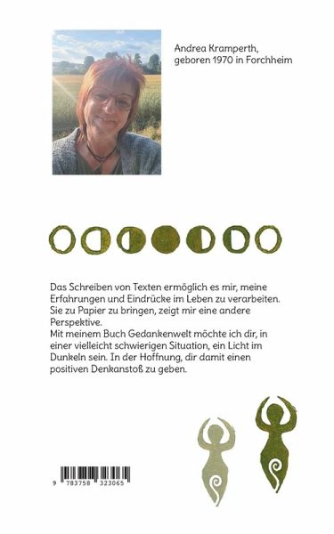 Andrea Kramperth, geboren 1970 in Forchheim und gelernte Krankenschwester. Im Herzen verbunden durch Spiritualität und Lyrik.