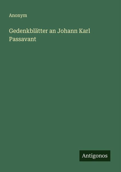 Unveränderter Nachdruck der Originalausgabe von 1860. Gedenkblätter an Johann Karl Passavant Der Verlag Antigonos spezialisiert sich auf die Herausgabe von Nachdrucken historischer Bücher. Wir achten darauf, dass diese Werke der Öffentlichkeit in einem guten Zustand zugänglich gemacht werden, um ihr kulturelles Erbe zu bewahren.