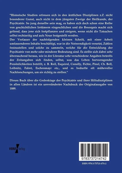 Dieses Buch über die Gedenktage der Psychiatrie und ihrer Hilfsdisziplinen in allen Ländern ist ein unveränderter Nachdruck der Originalausgabe von 1889.