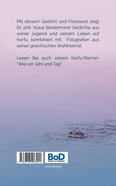 Mit diesem Gedicht- und Fotoband zeigt Dr. phil. Klaus Biedermann Gedichte aus seiner Jugend und seinem Leben auf Korfu, kombiniert mit Fotografien aus seiner griechischen Wahlheimat. Lesen Sie auch seinen Korfu-Roman: "Wie vor Jahr und Tag".