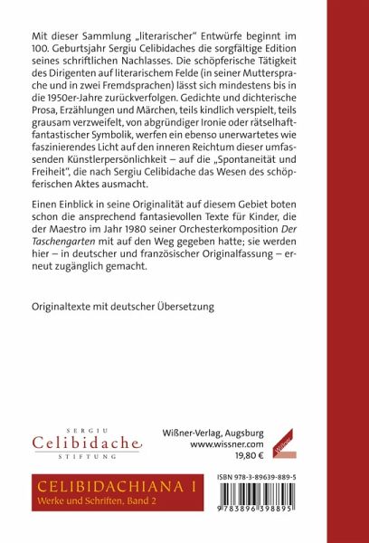Mit dieser Sammlung "literarischer" Entwürfe beginnt im 100. Geburtsjahr Sergiu Celibidaches die sorgfältige Edition seines schriftlichen Nachlasses. Die schöpferische Tätigkeit des Dirigenten auf literarischem Feld (in seiner Muttersprache und in zwei Fremdsprachen) lässt sich mindestens bis in die 1950er-Jahre zurückverfolgen. Gedichte und dichterische Prosa, Erzählungen und Märchen, teils kindlich verspielt, teils grausam verzweifelt, von abgründiger Ironie oder rätselhaftfantastischer Symbolik, werfen ein ebenso unerwartetes wie faszinierendes Licht auf den inneren Reichtum dieser umfassenden Künstlerpersönlichkeit - auf die "Spontaneität und Freiheit", die nach Sergiu Celibidache das Wesen des schöpferischen Aktes ausmacht. Einen Einblick in seine Originalität auf diesem Gebiet boten schon die ansprechend fantasievollen Texte für Kinder, die der Maestro im Jahr 1980 seiner Orchesterkomposition "Der Taschengarten" mit auf den Weg gegeben hatte; sie werden hier - in deutscher und französischer Originalfassung - erneut zugänglich gemacht. Originaltexte mit gegenübergestellter Übersetzung von Svetlana Pallady-Bobeica, Cezara Bobeica und Patrick Lang.