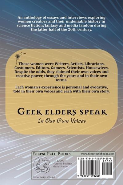 An anthology of essays and interviews exploring the undeniable history of women creators in Science Fiction/Fantasy & Media fandom during the latter half of the 20th century. These women were writers. Artists. Costumers. Editors. Gamers. Scientists. Housewives. Despite the odds, they claimed their own voices and creative power, through the years and in their own terms. ¿Each woman's experience is personal and evocative, told in their own voices and each with their own story.