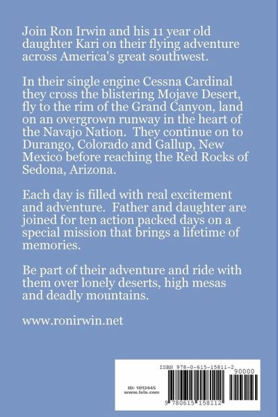 A fascinating adventure unfolds as a 62 year old father and his 11 year old daughter set off on a thrilling ten day flight across the vast and rugged terrain of the American southwest. Join Ron and Kari as they fly across the blazing Mojave Desert to the rim of the Grand Canyon. Thrill at their landing on a rugged runway in the heart of the Navajo Nation. Be with them as they fly to the Rocky Mountains and then across the breath taking but unforgiving land of New Mexico and Arizona. A great book for adventurers of all ages.