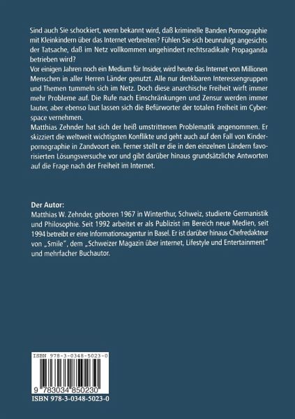 Teil 1, Gefahren 1 Mit dem Wort "Pornographie" ohne weitere Bezeichnung ist in die sem Buch immer die legale, "weiche" Pornographie gemeint. Wenn die verbotene Form der Pornographie bezeichnet werden, wird sie zusätz lich als "illegale" oder "harte" Pornographie tituliert. 2 950703.cover.html 3 Die Grenze zwischen bloß erotischen und pornographischen Inhalten ist sehr schwierig zu ziehen und gehört unter Strafrechts experten zu den immer wieder heiß diskutierten Problemen. Uns mag hier diese einfache Definition genügen. V gl. Rosenthal1997: 190. 4 vgl. Schweizer Strafgesetzbuch Art. 197, Abs. 3. S vgl. Bornemann 1984: 11 05. 6 vgl. Bornemann 1984: 931. 7 vgl. Marcuse 1968. 8 vgl. Bornemann 1984: 932. 9 vgl. Bornemann 1984: 1110. 10 vgl. Bornemann 1984: 1110. 11 vgl. Bornemann 1984: 1110. 12 13 Beispiel aus dem Chatraum des Zürcher Onlinedienstes ZHOL vom Montag, 01.06.98. 14 IS 16 vgl. Paulus 1997. 17 Standardgröße eines Werbebanners laut Bannerstandard des Internet Advertising Bureaus, _banner _ standards/ban nersource.html 18 etwa: =voyeur-que nes 19 "Cyberporn rife in UK Offices as 'Pin Ups' get '90s Internet make over.", Newsbytes, 22.09.1997. 20 21 vgl. Kunz 1997. 186 22 vgl. Grossman 1997: 219 23 2. vgl. Paulus 1997. 25 Dieser Meinung ist etwa Wendy M. Grossman (Grossman 1997: 114ff.).
