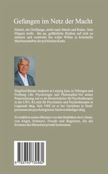Siegfried Binder studierte in Leipzig Jura, in Tübingen und Freiburg i.Br. Psychologie und Philosophie. Er war vor seiner Pensionierung Bereichsleiter für Psychotherapie in der LWL- Klinik für Psychiatrie und Psychotherapie in Lippstadt tätig. Er wurde häufig von Gerichten in Strafprozessen als psychologischer Sachverständiger hinzugezogen. In seinen Büchern erzählt er von den Realitäten des Lebens, von Angst, Schmerz, Freude und Begehren, die die Existenz des Menschen bestimmen und von den Ursachen und Bedingungen abweichenden Verhaltens.