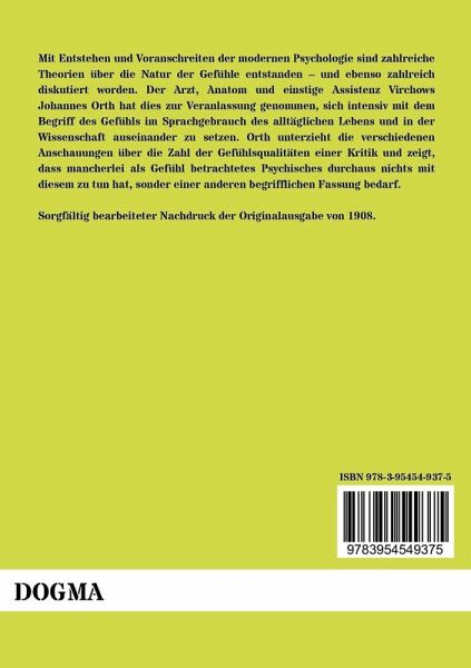Mit Entstehen und Voranschreiten der modernen Psychologie sind zahlreiche Theorien über die Natur der Gefühle entstanden und ebenso zahlreich diskutiert worden. Der Arzt, Anatom und einstige Assistenz Virchows Johannes Orth hat dies zur Veranlassung genommen, sich intensiv mit dem Begriff des Gefühls im Sprachgebrauch des alltäglichen Lebens und in der Wissenschaft auseinander zu setzen. Orth unterzieht die verschiedenen Anschauungen über die Zahl der Gefühlsqualitäten einer Kritik und zeigt, dass mancherlei als Gefühl betrachtetes Psychisches durchaus nichts mit diesem zu tun hat, sonder einer anderen begrifflichen Fassung bedarf.