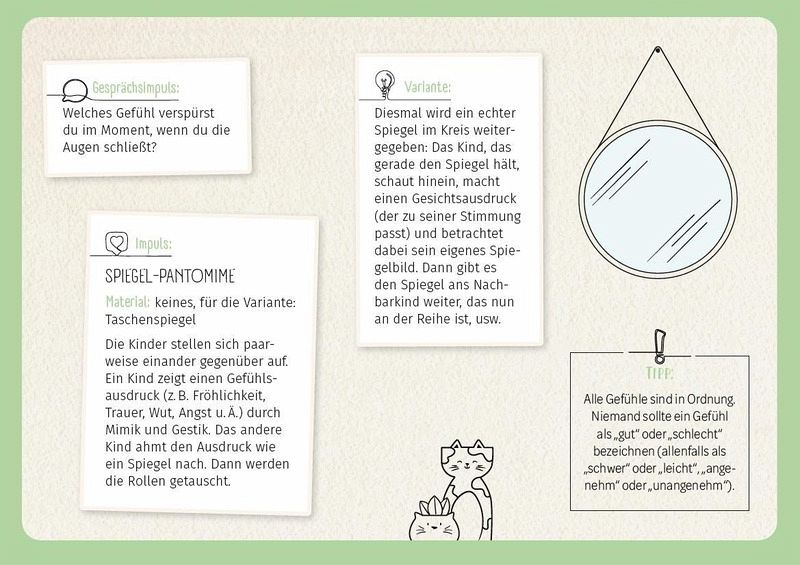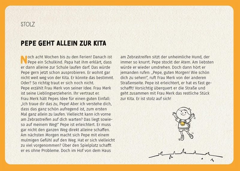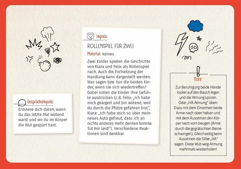Wie fühlt es sich an, wenn ich überglücklich bin und was passiert, wenn ich ganz viel Wut im Bauch habe? In diesem Kartenset laden euch 32 Geschichten dazu ein, Gefühle zu entdecken und zu verstehen. Zusätzlich geben dir Impulsfragen Anregungen für Gespräche mit den Kindern. Für den spielerischen Umgang mit Gefühlen gibt es zudem immer eine passende Spielidee auf jeder Rückseite. Liebe, Trauer, Freude, Angst... alle Gefühle haben Platz, auch in diesem Set.