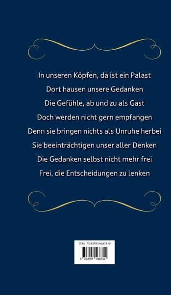 In unseren Köpfen, da ist ein Palast Dort hausen unsere Gedanken Die Gefühle, ab und zu als Gast Doch werden nicht gern empfangen Denn sie bringen nichts als Unruhe herbei Sie beeinträchtigen unser aller Denken Die Gedanken selbst nicht mehr frei Frei, die Entscheidungen zu lenken