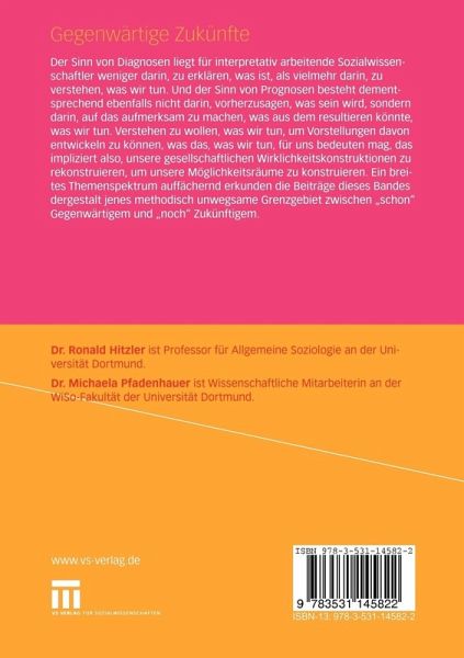 Der Sinn von Diagnosen liegt für interpretativ arbeitende Sozialwissenschaftler weniger darin, zu erklären, was ist, als vielmehr darin, zu verstehen, was wir tun. Und der Sinn von Prognosen besteht dementsprechend ebenfalls nicht darin, vorherzusagen, was sein wird, sondern darin, auf das aufmerksam zu machen, was aus dem resultieren könnte, was wir tun. Verstehen zu wollen, was wir tun, um Vorstellungen davon entwickeln zu können, was das, was wir tun, für uns bedeuten mag, das impliziert also, unsere gesellschaftlichen Wirklichkeitskonstruktionen zu re-konstruieren, um unsere Möglichkeitsräume zu konstruieren. Ein breites Themenspektrum auffächernd erkunden die Beiträge dieses Bandes dergestalt jenes methodisch unwegsame Grenzgebiet zwischen 'schon' Gegenwärtigem und 'noch' Zukünftigem.