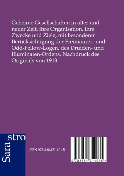 Geheime Gesellschaften in alter und neuer Zeit, ihre Organisation, ihre Zwecke und Ziele, mit besonderer Berücksichtigung der Freimaurer- und Odd-Fellow-Logen, des Druiden- und Illuminaten-Ordens, Nachdruck des Originals von 1913.