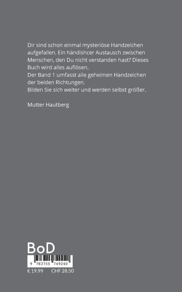 Dir sind schon einmal mysteriöse Handzeichen aufgefallen. Ein händishcer Austausch zwischen Menschen, den Du nicht verstanden hast? Dieses Buch wird alles auflösen. Der Band 1 umfasst alle geheimen Handzeichen der beiden Richtungen. Bilden Sie sich weiter und werden selbst größer. Mutter Hautberg