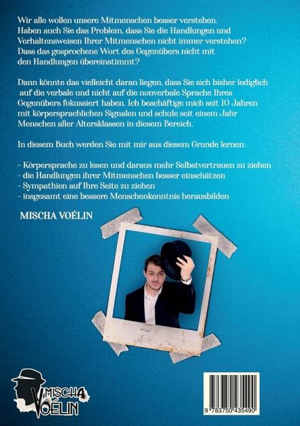 Wir alle wollen unsere Mitmenschen besser verstehen. Haben auch Sie das Problem, dass Sie die Handlungen und Verhaltensweisen Ihrer Mitmenschen nicht immer verstehen? Dass das gesprochene Wort des Gegenübers nicht mit den Handlungen übereinstimmt? Dann könnte das vielleicht daran liegen, dass Sie sich bisher lediglich auf die verbale und nicht auf die nonverbale Sprache Ihres Gegenübers fokussiert haben. Ich beschäftige mich seit 10 Jahren mit Körpersprachlichen Signalen und schule seit einem Jahr Menschen aller Altersklassen in diesem Bereich.In diesem Buch werden Sie mit mir aus diesem Grunde lernen:- Körpersprache zu lesen und daraus mehr Selbstvertrauen zu ziehen- die Handlungen ihrer Mitmenschen besser einschätzen und Ihre Handlungen vorhersehen können- Sympathien auf Ihre Seite zu ziehen- insgesamt eine bessere Menschenkenntnis herausbilden