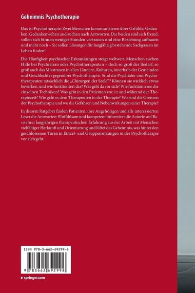 In diesem Ratgeber finden Patienten, ihre Angehörigen und alle interessierten Leser die Antworten: Einfühlsam und kompetent informiert die Autorin auf Basis ihrer langjährigen therapeutischen Erfahrung aus der Arbeit mit Menschen vielfältiger Herkunft und Orientierung und lüftet das Geheimnis, was hinter den geschlossenen Türen in Einzel- und Gruppensitzungen in der Psychotherapie vor sich geht.