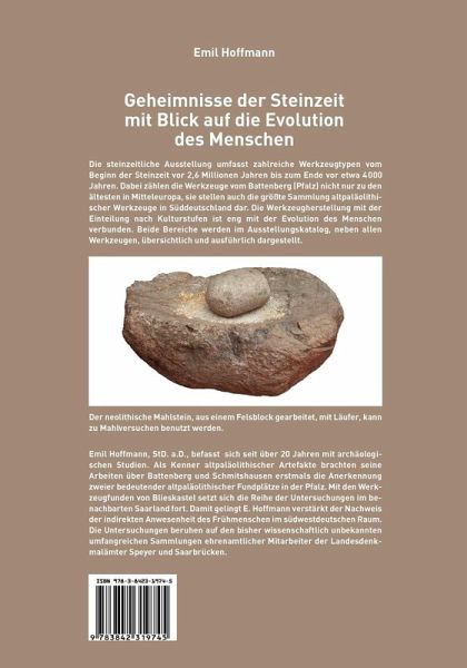 Zu einer Ausstellung der Stadt Lampertheim mit weit über 300 Artefakten aus allen Epochen der Steinzeit aus der Sammlung von Emil Hoffmann, StD.a.D., stammt auch der Begleitband zur Ausstellung. Diese umfasst alle steinzeitlichen Kulturstufen von der ersten Werkzeugherstellung, der Altsteinzeit bis zur Jungsteinzeit. Alle ausgestellten Artefakte werden systematisch ausführlich beschrieben: Welche Typen wurden hergestellt? Wozu wurden sie verwendet? Wer hat sie hergestellt? Wie alt sind sie?Neben der umfangreichen Beschreibung ist jedes Artefakt auch farblich im Text abgebildet. Mit einem Überblick über die Kulturstufen der Steinzeit, der Evolution des Menschen und einem umfassenden Glossar, erhält der Ausstellungskatalog die Qualität eines Nachschlagwerkes über die gesamte Steinzeit. Die Stadt Lampertheim hat mit der Dauerausstellung in der Städtischen Bücherei und mit der Herausgabe eines überzeugenden Ausstellungskatalogs zur gesamten Steinzeit neue Wege beschritten. Hervorzuheben sind die 600 000 bis 800 000 Jahre alten Werkzeuge und Geräte vom nahe gelegenen Fundort Battenberg (Pfalz), dem größten altpaläolithischen Fundort in Süddeutschland.