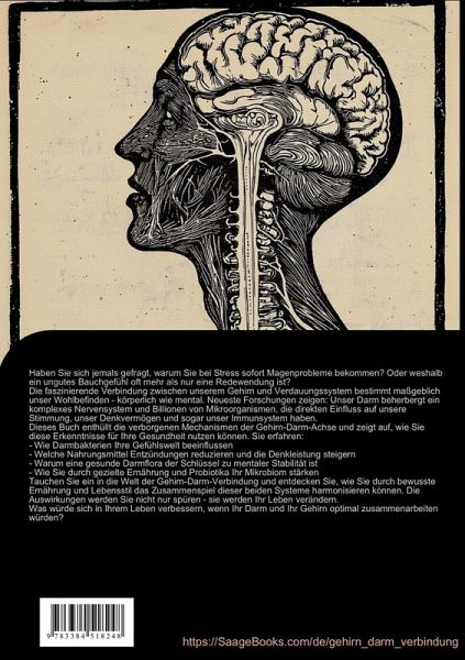 Die faszinierende Gehirn-Darm-Verbindung steht im Mittelpunkt dieses fundierten Ratgebers, der die komplexen Zusammenhänge zwischen unserem Verdauungssystem und dem Gehirn verständlich erklärt.Das Buch gliedert sich in fünf große Themenbereiche: Zunächst werden die Grundlagen der Gehirn-Darm-Verbindung erläutert, wobei besonders auf die Nervenbahnen zwischen Gehirn und Darm sowie die Bedeutung der Darmflora und des Mikrobioms eingegangen wird. Der zweite Teil widmet sich der entzündungshemmenden Ernährung und zeigt auf, welche Lebensmittel besonders positiv auf die Gehirn-Darm-Achse wirken.Ein weiterer Schwerpunkt liegt auf der praktischen Darmsanierung und Mikrobiompflege. Hier erfahren Leser, wie sie durch gezielte Maßnahmen und den Einsatz von Probiotika ihre Darmgesundheit verbessern können. Der Einfluss der Darmfunktion auf die psychische Gesundheit wird im vierten Teil beleuchtet, während der letzte Abschnitt Strategien für eine ganzheitliche Körper-Gehirn-Pflege vorstellt.Mit zahlreichen Grafiken und Schaubildern werden wissenschaftliche Erkenntnisse anschaulich dargestellt. Praktische Tipps zur Optimierung der Ernährung, Bewegungsempfehlungen und Entspannungstechniken machen das Buch zu einem wertvollen Begleiter für alle, die das Zusammenspiel von Gehirn und Körper besser verstehen und positiv beeinflussen möchten.Besonders hilfreich sind die detaillierten Ausführungen zu präbiotischen und fermentierten Lebensmitteln sowie konkrete Anleitungen zur Darmsanierung und Stressreduktion. Das Buch vermittelt aktuelles Wissen über die Bedeutung einer gesunden Darmflora für unser körperliches und geistiges Wohlbefinden.Dieses Buch wurde unter Verwendung innovativer Technologien wie Künstlicher Intelligenz sowie eigens entwickelter Tools erstellt - etwa bei der Ideenfindung, der Recherche, dem Schreiben, dem Lektorat, der Qualitätssicherung und der Gestaltung dekorativer Illustrationen.So möchten wir Ihnen ein besonders stimmiges, modernes und noch hochwertigeres Leseerlebnis bieten.