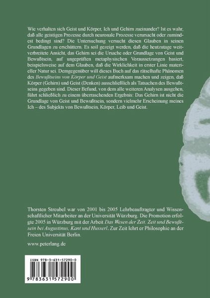 Wie verhalten sich Geist und Körper, Ich und Gehirn zueinander? Ist es wahr, daß alle geistigen Prozesse durch neuronale Prozesse verursacht oder zumindest bedingt sind? Die Untersuchung versucht diesen Glauben in seinen Grundlagen zu erschüttern. Es soll gezeigt werden, daß die heutzutage weitverbreitete Ansicht, das Gehirn sei die Ursache oder Grundlage von Geist und Bewußtsein, auf ungeprüften metaphysischen Voraussetzungen basiert, beispielsweise auf dem Glauben, daß die Wirklichkeit in erster Linie materieller Natur sei. Demgegenüber will dieses Buch auf das rätselhafte Phänomen des Bewußtseins von Körper und Geist aufmerksam machen und zeigen, daß Körper (Gehirn) und Geist (Denken) ausschließlich als Tatsachen des Bewußtseins gegeben sind. Dieser Befund, von dem alle weiteren Analysen ausgehen, führt schließlich zu einem überraschenden Ergebnis: Das Gehirn ist nicht die Grundlage von Geist und Bewußtsein, sondern vielmehr Erscheinung meines Ich - des Subjekts von Bewußtsein, Körper, Leib und Geist.