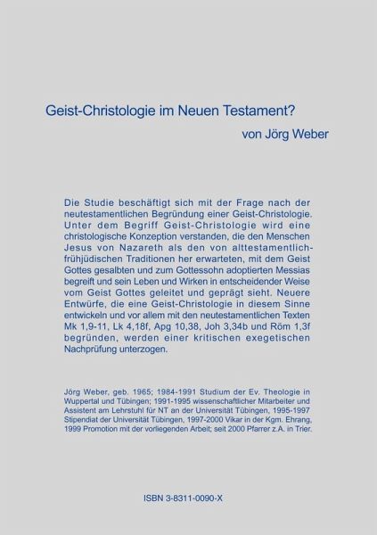 Meine Dissertation beschäftigt sich mit der Frage nach der neutestamentlichen Begründung einer Geist-Christologie. Unter dem Begriff Geist-Christologie wird eine christologische Konzeption verstanden, die den Menschen Jesus von Nazareth als den von alttestamentlich-frühjüdischen Traditionen her erwarteten, mit dem Geist Gottes gesalbten und zum Gottessohn adoptierten Messias begreift und sein Leben und Wirken in entscheidender Weise vom Geist Gottes geleitet und geprägt sieht. Neuere Entwürfe, die eine Geist-Christologie in diesem Sinne entwickeln und vor allem mit den neutestamentlichen Texten Mk 1,9-11, Lk 4,18f, Apg 10,38, Joh 3,34b und Röm 1,3f begründen, werden einer kritischen exegetischen Nachprüfung unterzogen.