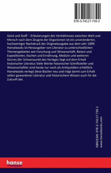 Geist und Stoff - Erläuterungen des Verhältnisses zwischen Welt und Mensch nach dem Zeugnis der Organismen ist ein unveränderter, hochwertiger Nachdruck der Originalausgabe aus dem Jahr 1899.