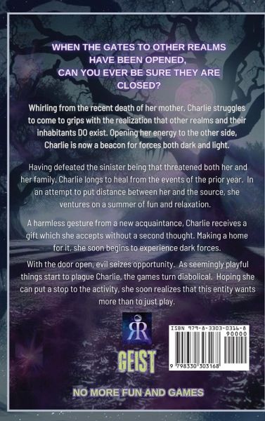 Whirling from the recent death of her mother, Charlie struggles to come to grips with the realization that other realms and their inhabitants DO exist. Opening her energy to the other side, Charlie is now a beacon for forces both dark and light. Having defeated the sinister being that threatened both her and her family, Charlie longs to heal from the events of the prior year. In an attempt to put distance between her and the source, she ventures on a summer of fun and relaxation. A harmless gesture from a new acquaintance, Charlie receives a gift which she accepts without a second thought. Making a home for it, she soon begins to experience dark forces. With the door open, evil seizes opportunity. As seemingly playful things start to plague Charlie, the games turn diabolical. Hoping she can put a stop to the activity, she soon realizes that this entity wants more than to just play. A harmless gesture from a new acquaintance, Charlie receives a gift which she accepts without a second thought. Making a home for it, she soon begins to experience dark forces.