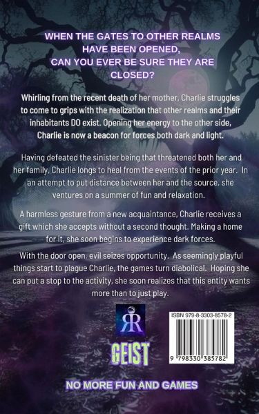 WHEN THE GATES TO OTHER REALMS HAVE BEEN OPENED, CAN YOU EVER BE SURE THEY ARE CLOSED? Whirling from the recent death of her mother, Charlie struggles to come to grips with the realization that other realms and their inhabitants DO exist. Having opened her energy to the other side, Charlie is now a beacon for forces both dark and light.*** Having defeated the sinister being that threatened both her and her family, Charlie longs to heal from the events of the prior year. In an attempt to put distance between her and the source she ventures on a summer of fun and relaxation. ***A harmless gesture from a new acquaintance, Charlie receives a gift which she accepts without a second thought. Making a home for it, she soon begins to experience dark forces.***With the door open, evil seizes opportunity. As seemingly playful things start to plague Charlie, the games turn diabolical. Hoping she can put a stop to the activity, she soon realizes that this entity wants more than to just play. It wants her.