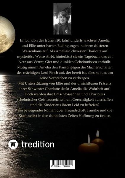"Geister der Gerechtigkeit"Eine Geschichte über Mut, Geheimnisse und die unerschütterliche Kraft der Hoffnung.Im düsteren Schatten eines Londoner Waisenhauses um 1900 beginnt die Reise von Amelia Finch und ihrer besten Freundin Ellie. Die beiden Mädchen kämpfen täglich ums Überleben in einem Heim, das mehr einer Fabrik gleicht als einem Zuhause. Doch Amelias Leben nimmt eine dramatische Wendung, als der Geist ihrer verstorbenen Schwester Charlotte erscheint, mit einer dringenden Bitte: "Finde die Wahrheit hinter meinem Tod."Mit Charlottes Hilfe decken Amelia und Ellie ein Netz aus Korruption, Gier und Verrat auf, das bis in die höchsten Kreise der Gesellschaft reicht. Lord Finch, ein mächtiger Adeliger, hat jahrzehntelang Waisenhäuser genutzt, um Profit zu machen, während die Kinder in Elend leben. Doch das ist nicht alles: Amelia entdeckt, dass sie selbst Teil eines weit größeren Geheimnisses ist, das ihre Familie und ihr Erbe betrifft.Zwischen Momenten des Lachens - dank Charlottes schelmischen Streiche, und tiefer Trauer über die Grausamkeit der Welt lernen Amelia und Ellie, für das zu kämpfen, was richtig ist. Unterstützt von loyalen Verbündeten und angetrieben von Charlottes unerschütterlichem Geist, gehen sie Risiken ein, die alles verändern könnten.Am Ende entsteht aus Schmerz ein Symbol der Hoffnung, ein Zuhause für verlorene Seelen, wo Kinder endlich das Leben führen können, das sie verdienen. Doch die Frage bleibt: Kann Gerechtigkeit triumphieren, wenn die Mächtigen alles zu verlieren haben?