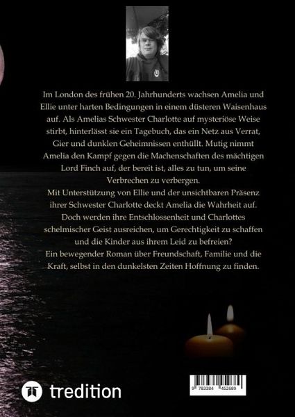 "Geister der Gerechtigkeit"Eine Geschichte über Mut, Geheimnisse und die unerschütterliche Kraft der Hoffnung.Im düsteren Schatten eines Londoner Waisenhauses um 1900 beginnt die Reise von Amelia Finch und ihrer besten Freundin Ellie. Die beiden Mädchen kämpfen täglich ums Überleben in einem Heim, das mehr einer Fabrik gleicht als einem Zuhause. Doch Amelias Leben nimmt eine dramatische Wendung, als der Geist ihrer verstorbenen Schwester Charlotte erscheint, mit einer dringenden Bitte: "Finde die Wahrheit hinter meinem Tod."Mit Charlottes Hilfe decken Amelia und Ellie ein Netz aus Korruption, Gier und Verrat auf, das bis in die höchsten Kreise der Gesellschaft reicht. Lord Finch, ein mächtiger Adeliger, hat jahrzehntelang Waisenhäuser genutzt, um Profit zu machen, während die Kinder in Elend leben. Doch das ist nicht alles: Amelia entdeckt, dass sie selbst Teil eines weit größeren Geheimnisses ist, das ihre Familie und ihr Erbe betrifft.Zwischen Momenten des Lachens - dank Charlottes schelmischen Streiche, und tiefer Trauer über die Grausamkeit der Welt lernen Amelia und Ellie, für das zu kämpfen, was richtig ist. Unterstützt von loyalen Verbündeten und angetrieben von Charlottes unerschütterlichem Geist, gehen sie Risiken ein, die alles verändern könnten.Am Ende entsteht aus Schmerz ein Symbol der Hoffnung, ein Zuhause für verlorene Seelen, wo Kinder endlich das Leben führen können, das sie verdienen. Doch die Frage bleibt: Kann Gerechtigkeit triumphieren, wenn die Mächtigen alles zu verlieren haben?