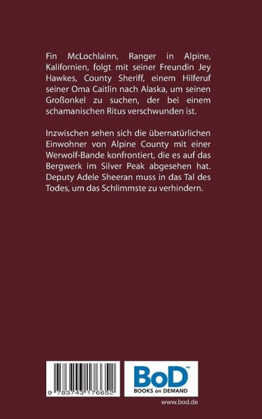 Fin McLochlainn, Ranger in Alpine, Kalifornien, folgt mit seiner Freundin Jey Hawkes, County Sheriff, einem Hilferuf seiner Oma Caitlin nach Alaska, um seinen Großonkel zu suchen, der bei einem schamanischen Ritus verschwunden ist. Inzwischen sehen sich die übernatürlichen Einwohner von Alpine County mit einer Werwolf-Bande konfrontiert, die es auf das Bergwerk im Silver Peak abgesehen hat. Deputy Adele Sheeran muss in das Tal des Todes, um das Schlimmste zu verhindern.