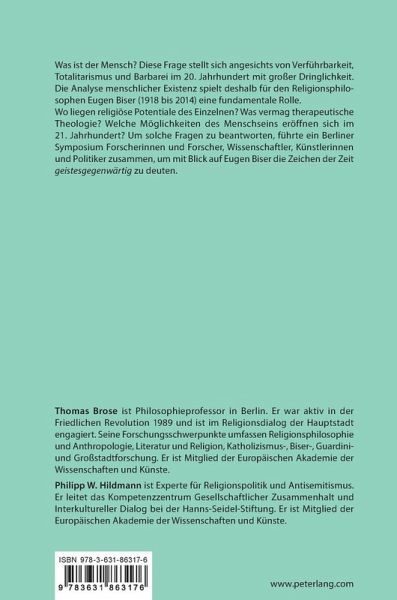 Wo liegen religiöse Potentiale des Einzelnen? Was vermag therapeutische Theologie? Welche Möglichkeiten des Menschseins eröffnen sich im 21. Jahrhundert? Um solche Fragen zu beantworten, führte ein Berliner Symposium Forscherinnen und Forscher, Wissenschaftler, Künstlerinnen und Politiker zusammen, um mit Blick auf Eugen Biser die Zeichen der Zeit geistesgegenwärtig zu deuten.