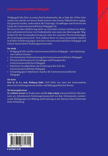 Wolfgang Klafki führt in seinen fünf Studienbriefen, die er Ende der 1970er-Jahre verfasst hat und die mit diesem Band erstmals einer breiten Öffentlichkeit zugänglich gemacht werden, umfassend in die Ursprünge, Grundfragen und theoretischen Linien der Geisteswissenschaftlichen Pädagogik ein.