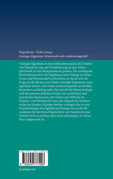 Geistiges Eigentum ist eine Schlüsselressource. Im Zeitalter von Digitalisierung und Globalisierung ist sein Schutz gleichwohl in eine Akzeptanzkrise geraten. Der vorliegende Band dokumentiert die Ergebnisse eines Dialogs zwischen Praxis und Wissenschaft in Bereichen, in denen sich die Frage, ob die Rechte zum Schutz Geistigen Eigentums einen legitimen Schutz- oder einen Ausbeutungstitel verschaffen, besonders nachhaltig stellt. Dies betrifft die Biotechnologie und den patentrechtlichen Schutz von natürlichen und genetischen Ressourcen, den Schutz von Software im Urheber- und Patentrecht sowie die Zukunft des Urheberrechts im Zeitalter digitaler Medien. Anliegen des in zwei Veranstaltungen durchgeführten Dialogs war es, das Bewusstsein für den berechtigten Kern von Patentrecht und Urheberrecht zu stärken, aber auch aufzuzeigen, wo dieser Kern aufgeweicht ist.