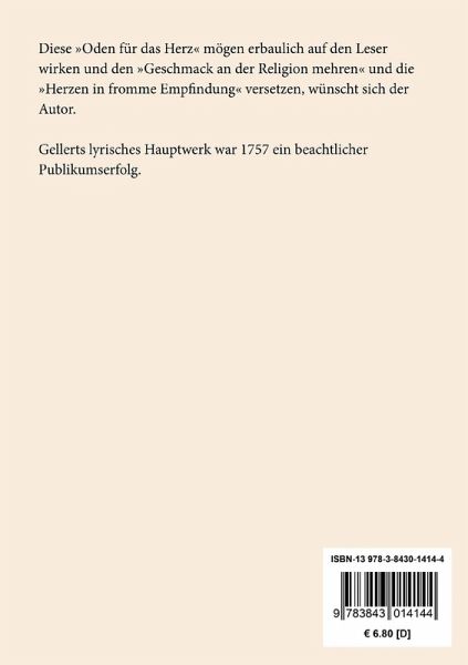 Diese "Oden für das Herz" mögen erbaulich auf den Leser wirken und den "Geschmack an der Religion mehren" und die "Herzen in fromme Empfindung" versetzen, wünscht sich der Autor.