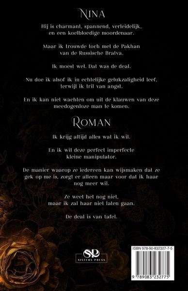 Nina. Hij is charmant, spannend, verleidelijk, en een koelbloedige moordenaar. Maar ik trouwde toch met de Pakhan van de Russische Bratva. Ik moest wel. Dat was de deal. Nu doe ik alsof ik in echtelijke gelukzaligheid leef, terwijl ik tril van angst. En ik kan niet wachten om uit de klauwen van deze meedogenloze man te komen. Roman. Ik krijg altijd alles wat ik wil. En ik wil deze perfect imperfecte kleine manipulator. De manier waarop ze iedereen kan wijsmaken dat ze gek op me is, zorgt er alleen maar voor dat ik haar nog meer wil. Ze weet het nog niet, maar ik zal haar niet laten gaan. De deal is van tafel.