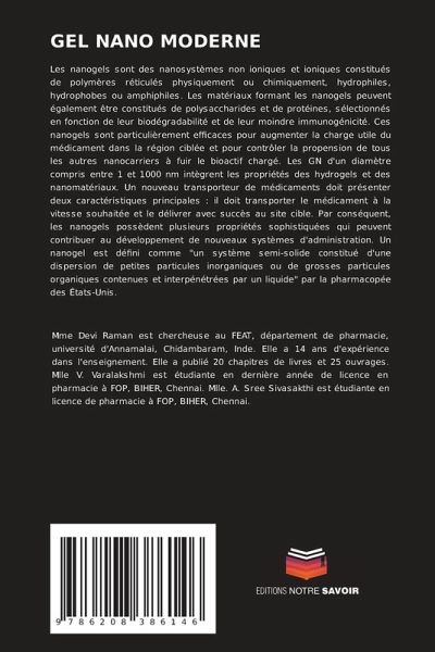 Les nanogels sont des nanosystèmes non ioniques et ioniques constitués de polymères réticulés physiquement ou chimiquement, hydrophiles, hydrophobes ou amphiphiles. Les matériaux formant les nanogels peuvent également être constitués de polysaccharides et de protéines, sélectionnés en fonction de leur biodégradabilité et de leur moindre immunogénicité. Ces nanogels sont particulièrement efficaces pour augmenter la charge utile du médicament dans la région ciblée et pour contrôler la propension de tous les autres nanocarriers à fuir le bioactif chargé. Les GN d'un diamètre compris entre 1 et 1000 nm intègrent les propriétés des hydrogels et des nanomatériaux. Un nouveau transporteur de médicaments doit présenter deux caractéristiques principales : il doit transporter le médicament à la vitesse souhaitée et le délivrer avec succès au site cible. Par conséquent, les nanogels possèdent plusieurs propriétés sophistiquées qui peuvent contribuer au développement de nouveaux systèmes d'administration. Un nanogel est défini comme "un système semi-solide constitué d'une dispersion de petites particules inorganiques ou de grosses particules organiques contenues et interpénétrées par un liquide" par la pharmacopée des États-Unis.