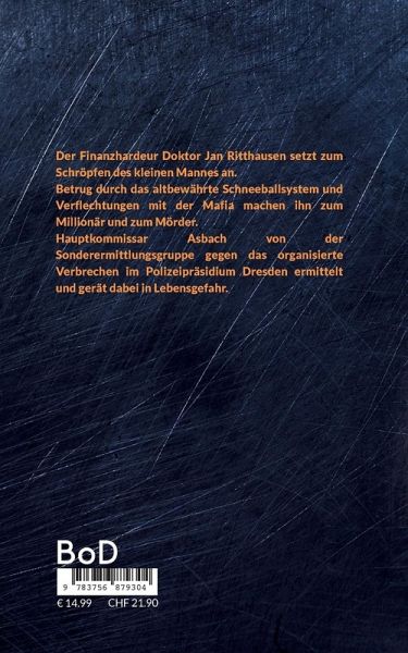 Der Finanzhardeur Doktor Jan Ritthausen setzt zum Schröpfen des kleinen Mannes an. Betrug durch das altbewährte Schneeballsystem und Verflechtungen mit der Mafia machen ihn zum Millionär und zum Mörder.Hauptkommissar Asbach von der Sonderermittlungsgruppe gegen das organisierte Verbrechen im Polizeipräsidium Dresden ermittelt und gerät dabei in Lebensgefahr.