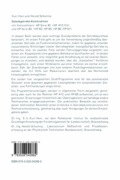 In diesem Buch werden zwei wichtige Grundprobleme der Getriebesynthese, d.i. der Getriebe-Entwurf flir gegebene praktische Bedingungen, behandelt. Im ersten Falle geht es um die Verwendung ungleichmäßig übersetzender Getriebe als Funktionsmechanismen, indem flir gegebene, einander zuzuordnende Winkellagen zweier Getriebeglieder zwang läufige Getriebe zu entwerfen sind. Im zweiten Falle werden Führungsgetriebe vorgestellt, von denen ein Koppelpunkt eine gegebene Bahnkurve durchlaufen soll. In beiden Fällen wird versucht, eine möglichst gute Annäherung an die exakten Bedingungen zu erreichen, und deshalb wurden, über die "klassischen" Verfahren hinausgehend, zum einen Mittel werte aus einer höheren als normal erreichbaren Zahl der Zuordnungen und zum anderen Punktlagenreduktionen verwendet, die mit Hilfe von Reduktionen ebenfalls über das Normalmaß hinauszugehen ermöglichen. Für befriedigende Getriebekonstruktionen genügt es aber nicht, sich mit der beschriebe nen Maßsynthese allein zu begnügen. Von nahezu gleicher Wichtigkeit ist die Berücksich tigung der "Nebenbedingungen ", an deren Nichtbeachtung viele Entwürfe scheitern müssen. Es sind dies vor allem die Garantie flir den einwandfreien Getriebedurchlauf durch vor gegebene Bewegungsbereiche, die Prüfung der Übertragungsgüte und zusätzlich z.B. noch die Abschätzung des Raumbedarfs und vor allem auch der Beschleunigungsverlauf, um schließlich auch höchsten Ansprüchen zu genügen. Die beiden hier vorgestellten Groß-Programme sind für das automatische Abtasten eines gesamten gegebenen Lösungsfeldes mit entsprechenden Zwischen- und Fehlmeldungen eingerichtet. Mit Getriebeproblemen in Grenzbereichen ist fast immer ein wichtiger Lern prozeß verbunden, indem für den Einzelfall Erkenntnisse grundlegender und grenzüber schreitender Art erworben werden können, die gegebenenfalls auf ähnliche Probleme übertragbar sind.