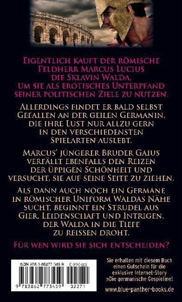 Eigentlich kauft der römische Feldherr Marcus Lucius die Sklavin Walda, um sie als erotisches Unterpfand seiner politischen Ziele zu nutzen. Allerdings findet er bald selbst Gefallen an der geilen Germanin, die ihre Lust nur allzu gern in den verschiedensten Spielarten auslebt. Marcus' jüngerer Bruder Gaius verfällt ebenfalls den Reizen der üppigen Schönheit und versucht, sie auf seine Seite zu ziehen.Als dann auch noch ein Germane in römischer Uniform Waldas Nähe sucht, beginnt ein Strudel aus Gier, Leidenschaft und Intrigen, der Walda in die Tiefe zu reißen droht.Für wen wird sie sich entscheiden?Diese Ausgabe ist vollständig, unzensiert und enthält keine gekürzten erotischen Szenen.
