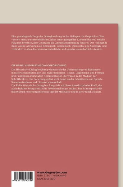 Eine grundlegende Frage der Dialogforschung ist das Gelingen von Konversation: Was versteht man in unterschiedlichen Kulturgemeinschaften, zu unterschiedlichen Zeiten unter gelingender Kommunikation? Welche Faktoren tragen zum Gelingen eines "guten" Gesprächs bei und welche Parameter erschweren die Kommunikation und bewirken, dass sich das Glück der Konversation nicht einstellt? Dabei sehen wir das "gelungene Gespräch" als ein Mittel der Gemeinschaftsbildung: Gelungene Gespräche schaffen und bestätigen Gemeinschaft, während als misslungen bewertete Gespräche eine Dialoggemeinschaft gefährden und möglicherweise zum Ausschluss von Akteuren führen. Wir behandeln diese Fragestellungen in einer dezidiert methodologischen Verschränkung von Literatur- und Sprachwissenschaft und in einer historischen Perspektive. Die diachrone Vertiefung ist notwendig, weil das Konzept der gelungenen Konversation ein kulturelles und damit historisches Konzept ist, das sich erst in der diachronen Sicht erschließt.